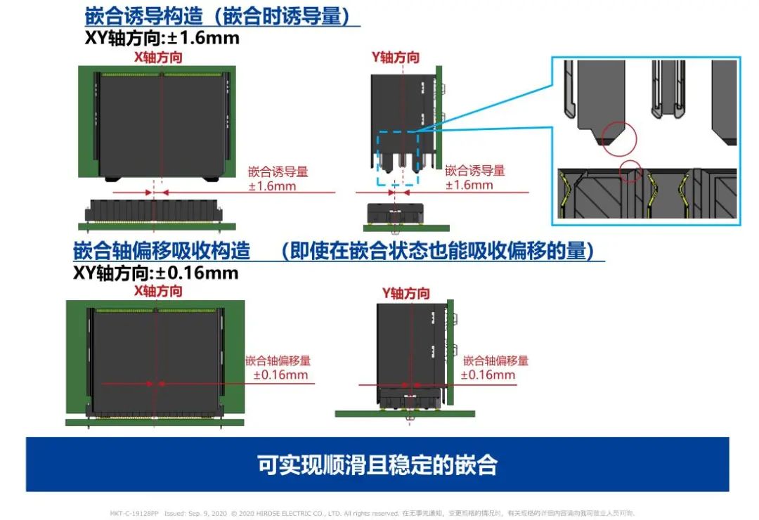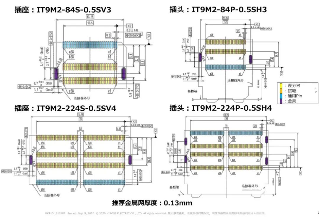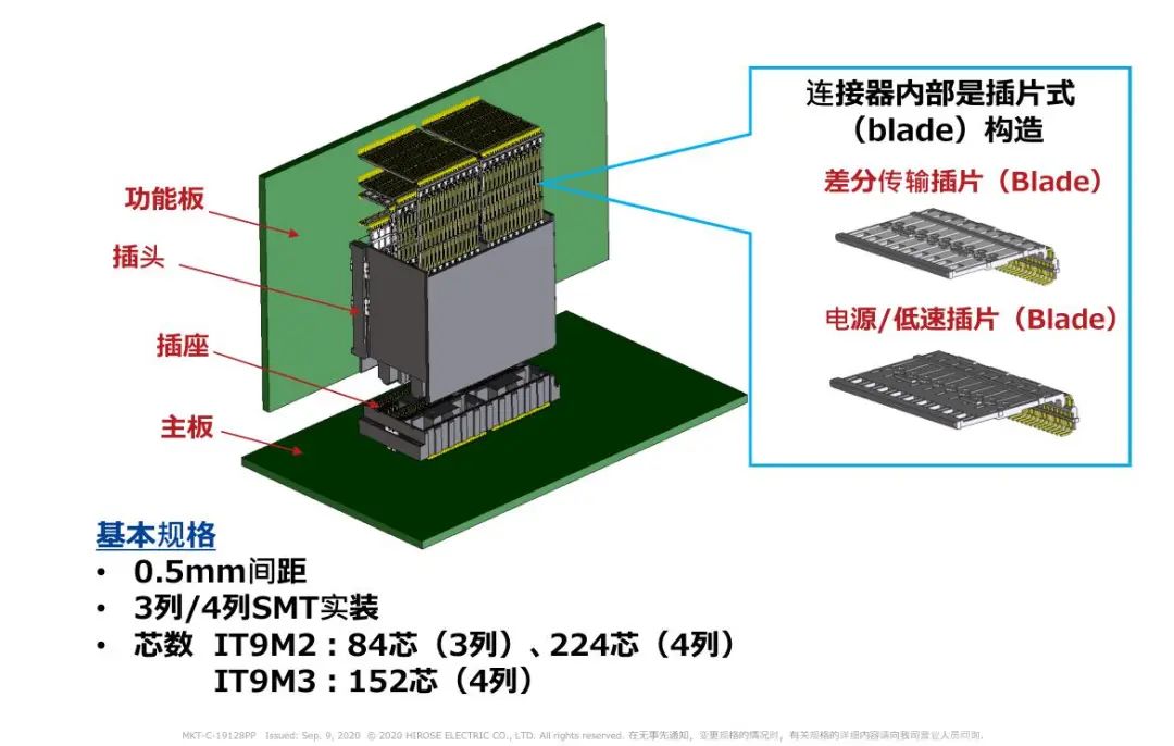 1 支持高速传输(28 + Gbps) 2 高密度: 50差分对/inch(224芯) 3 浮动构造: 可以在同一基板上实装多个连接器 4 选型 芯数:84芯、152芯、224芯 对应PCI Express 4.0/5.0