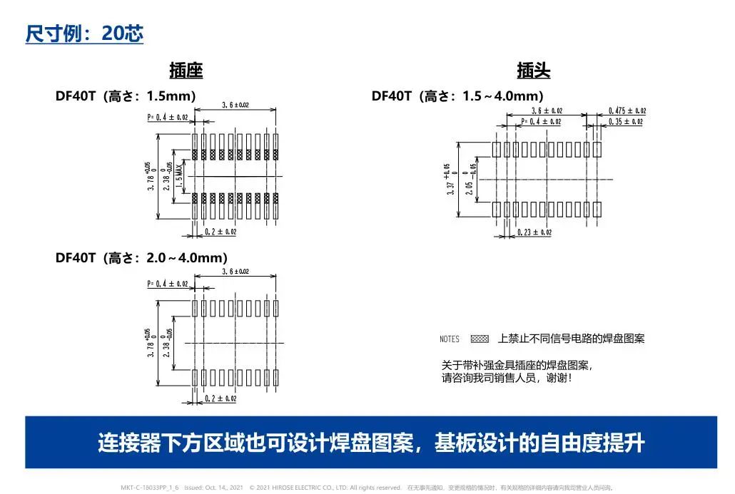 01 DF40系列 选型✦ 02 尺寸&选型 ✦ 03 车载应用使用事例 ✦ 04 连接示意图 ✦ 05 支持PCI Express 4.0 (16Gbps) 传输 ✦ 06 检查用连接器 ✦ 07 推荐基板图案 ✦ 08 规格 ✦ 如果应用需要高度可靠性,例如汽车,请联系公司代表以获取更多信息。