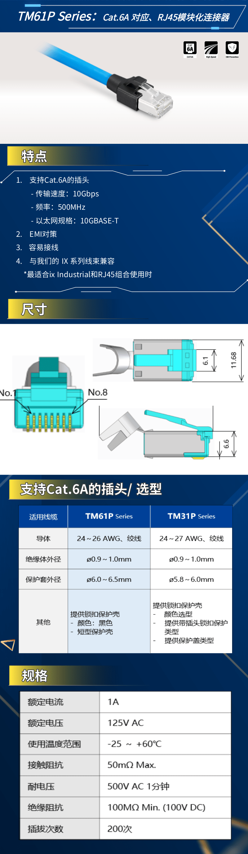 【新品发布】Cat.6A 对应、RJ45模块化连接器TM61P